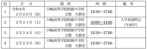 ◎合格者は2月10日(火)の午後1時から午後5時までに、川崎市立川崎高等学校附属中学校内2階の大教室にて受検票を提示し、合格通知書と誓約書を受け取ってください。